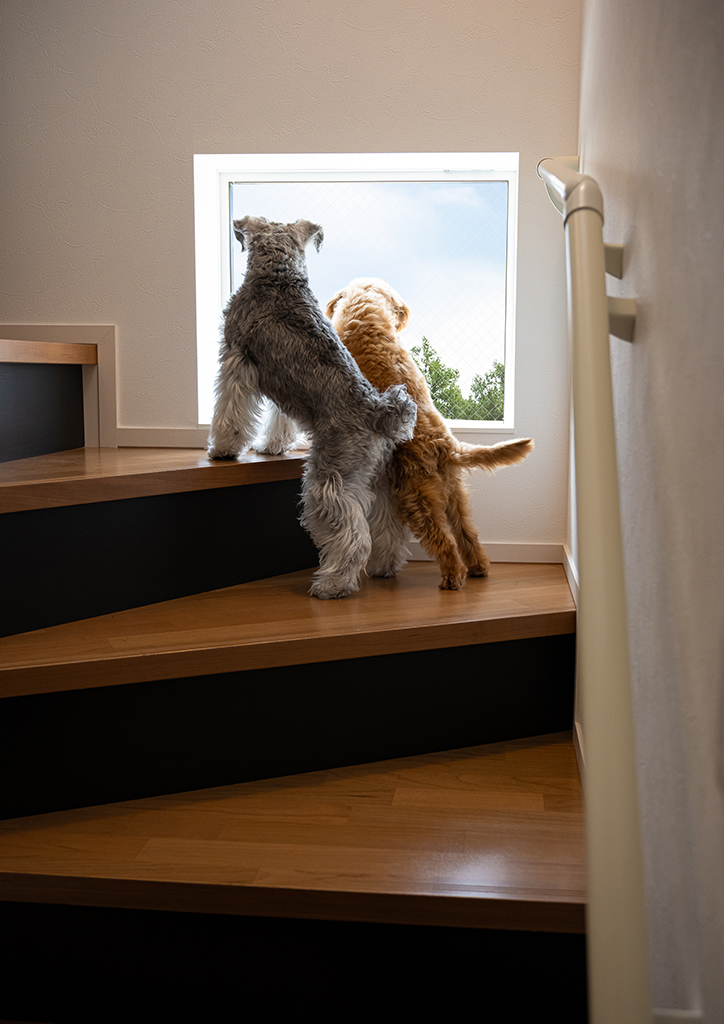 遠くを眺めることが好きな愛犬たちのために。アクセントでもあるこちらの窓辺は、ほっこりできる空間となりました。