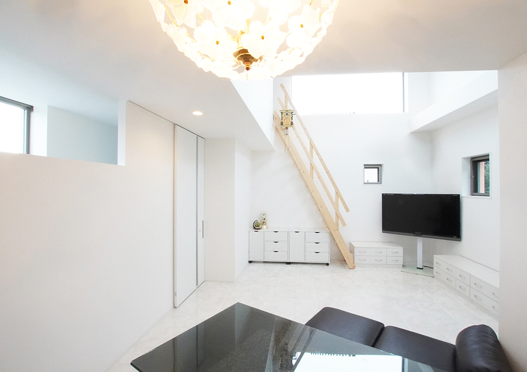 大きな吹き抜けがあふれる開放感を演出する広々としたLDKには、さらなる工夫を凝らしています。