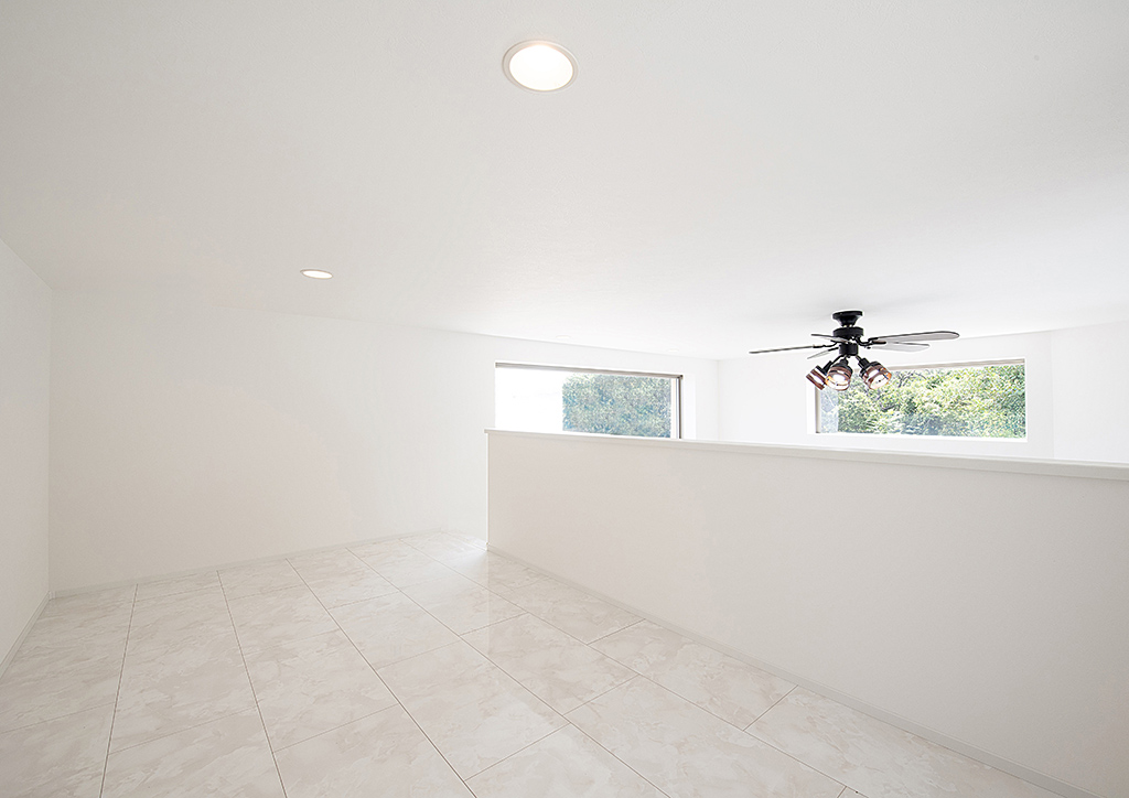 大きな吹き抜けに面しているロフトは居心地のよい空間です。
