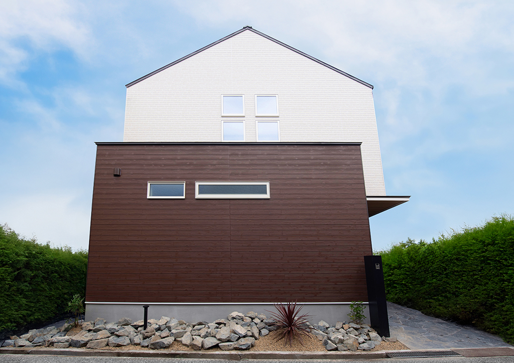 憧れの世界観をまず外観から具現化することを目指し、屋根の角度を従来よりやや急勾配な北米風にしました。