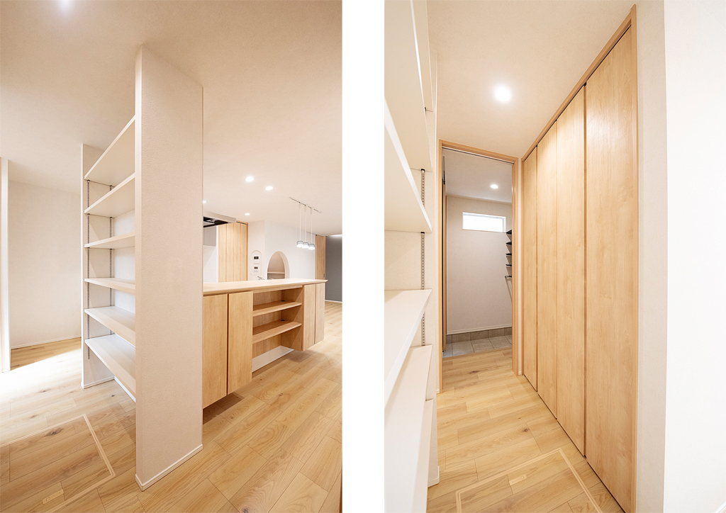 家族動線の扉の向こうには、充実のエントランスクロークがあり、毎日の暮らしに役立ちます。