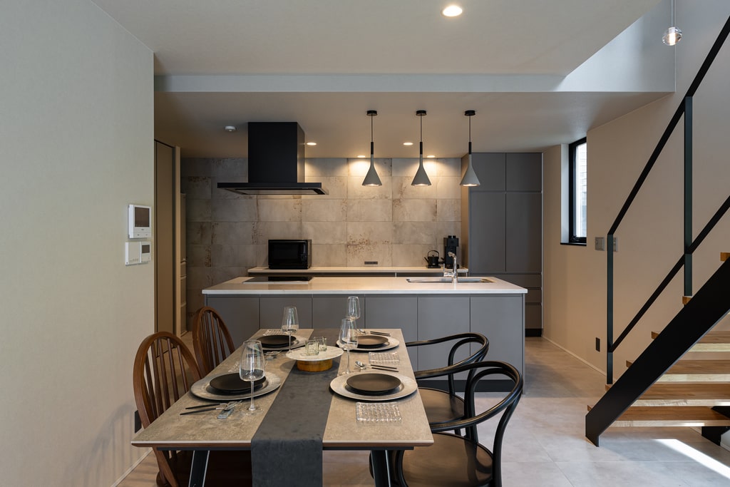 いつでもお子様の様子がわかるように、という奥様のご希望で、キッチンからリビング・ダイニング全体を見渡せるよう設計しています。