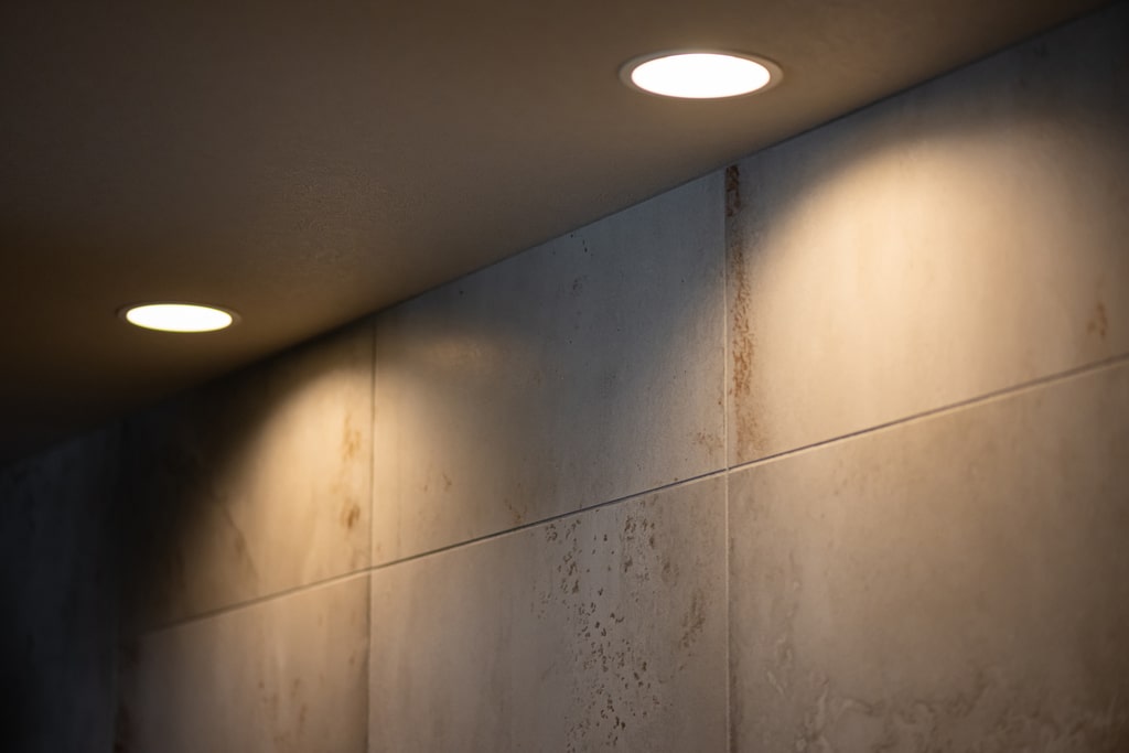 シェードがコンクリート製のFOSCARINI(フォスカリーニ)のペンダントライト。空間にうまくなじんでいます。