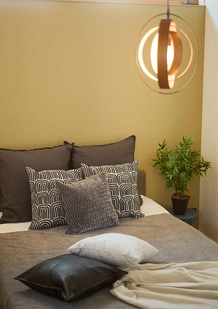 主寝室は優しいグリーンのアクセント壁が落ち着いた和の雰囲気を高めています。